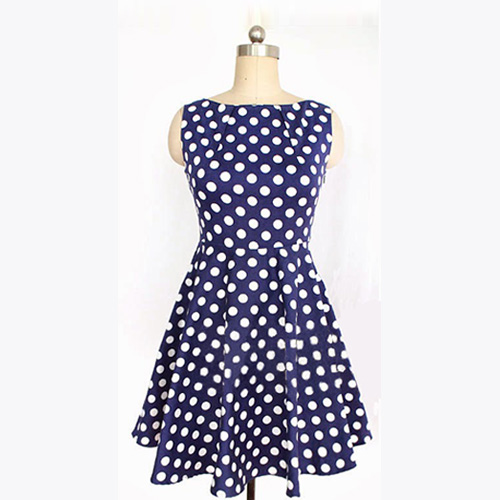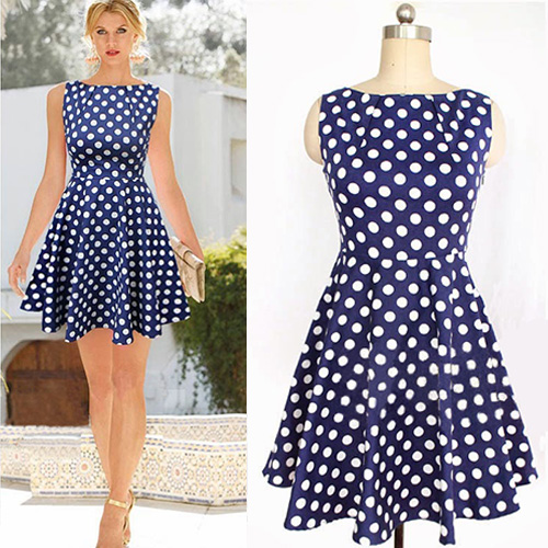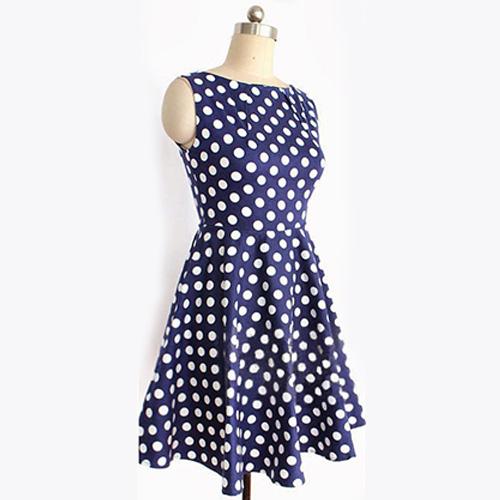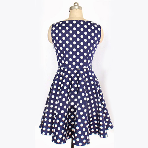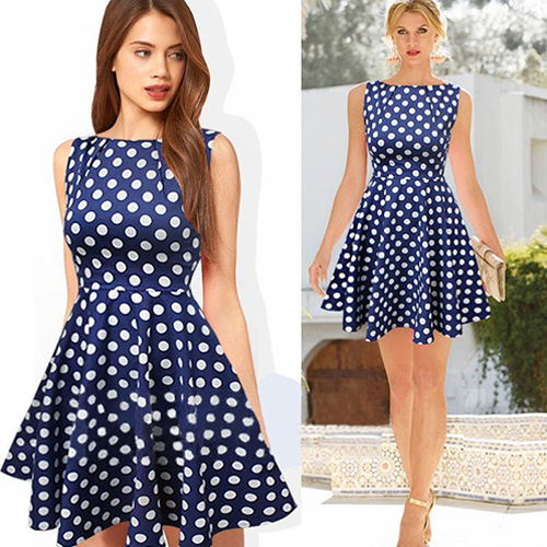 This dress features polka dots pattern,fashion and popular. Fashion round neck,sleeveless and high waist design,perfect outline your charming curve and show your elegant temperament.