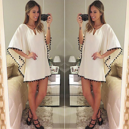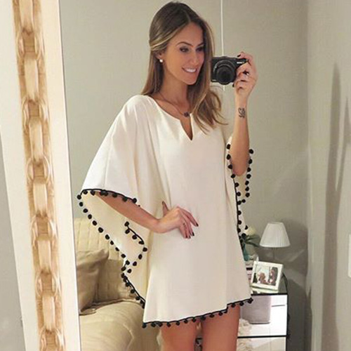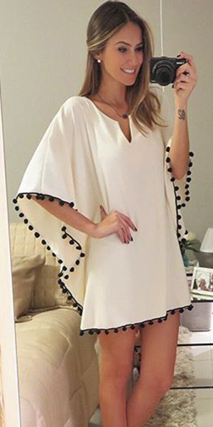 silhouette gives you an all-day comfort. Its v-neck and pompoms splice design adds some sexy