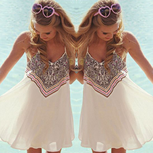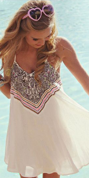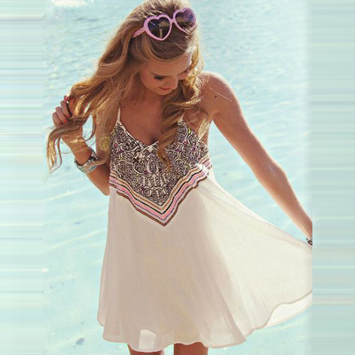 With a sheer chiffon with printed spliced design, this piece will let you bare your sun-kissed