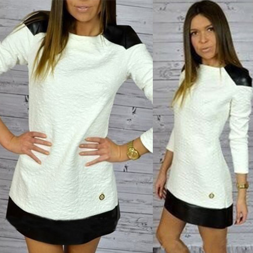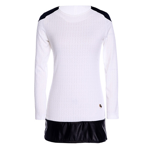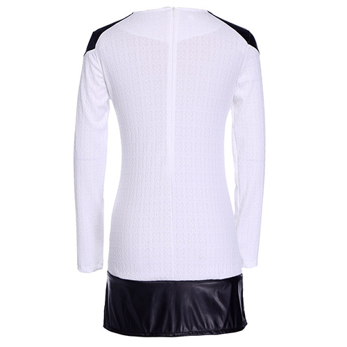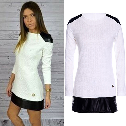 with pu leather spliced design makes it so chic and unique. Long sleeve and