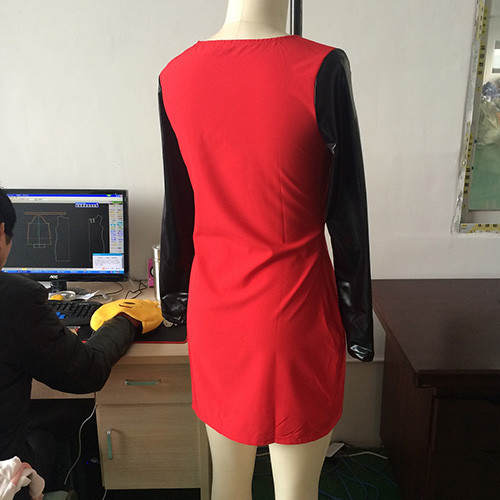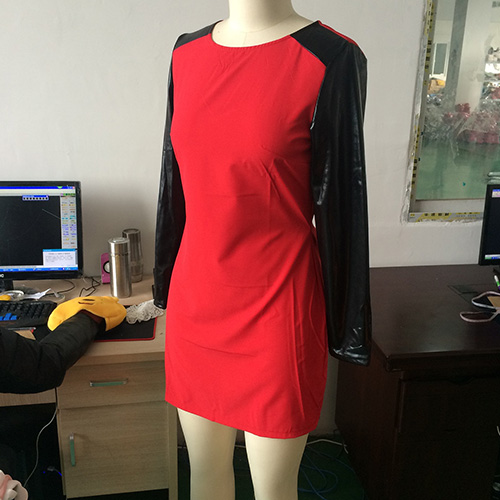 PU leather spliced long sleeve design,chic and stylish. Contrast color style,with round neck and slim fit design.