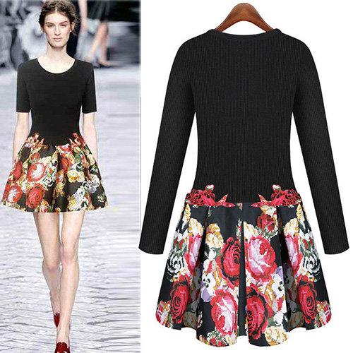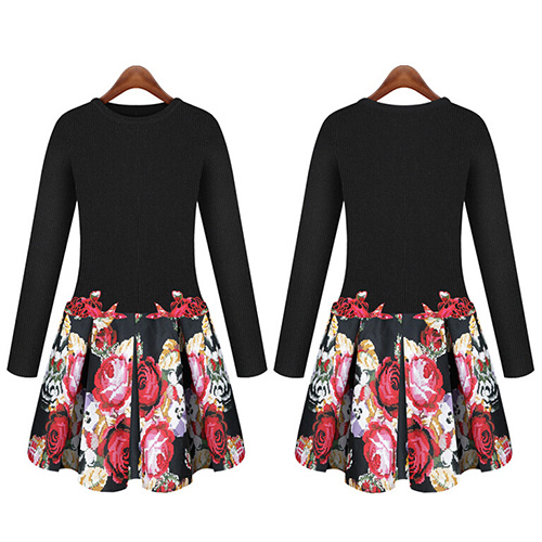 This knitting dress is fit for spring and fall wear. It features retro floral print hemline,round neck and long sleeve style. Even in winter,you can pair it with coat and leggings.