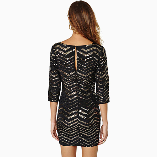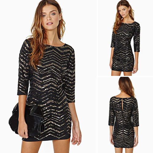 This dress features wave pattern,with sequins detailing design,chic and stylish. Half sleeve,