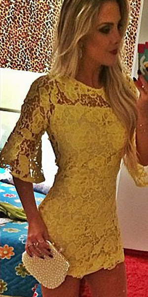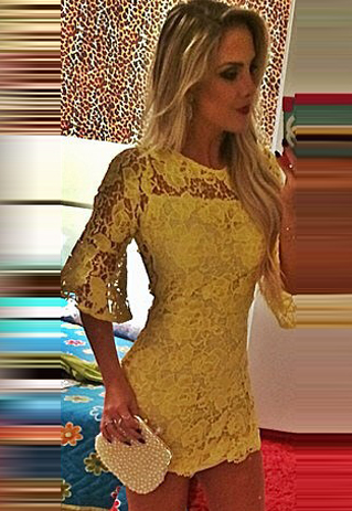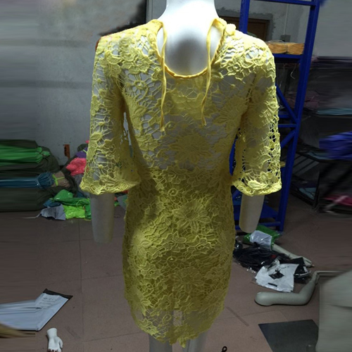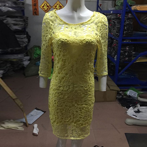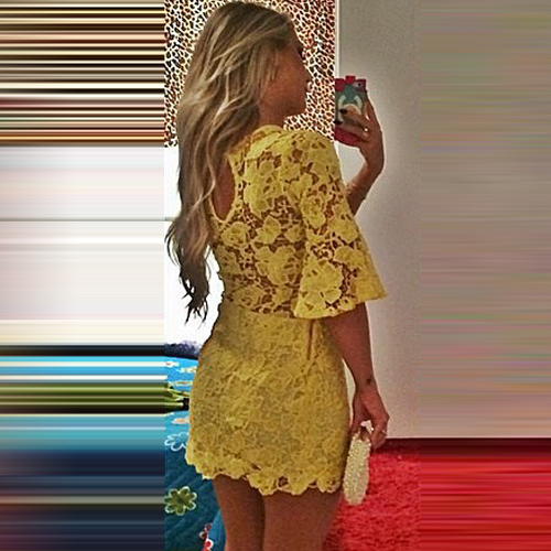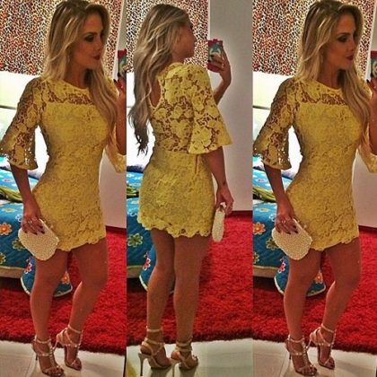 how could you miss this lace dress? It features yellow color,with half sleeve,round neck and slim fit design.