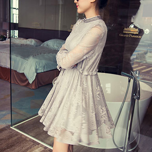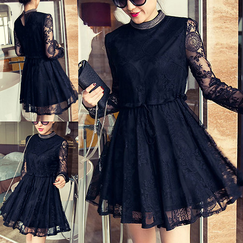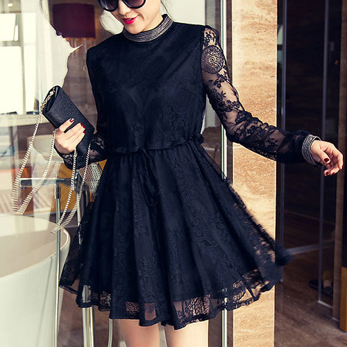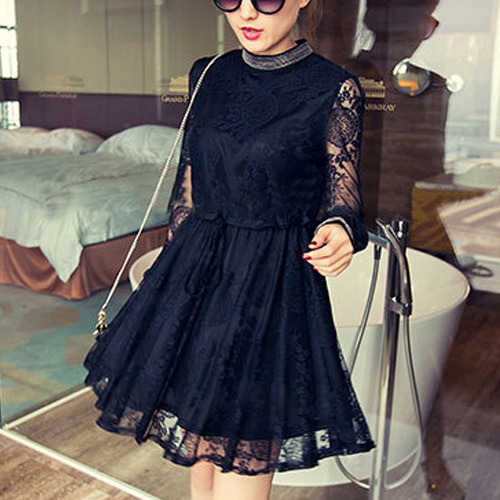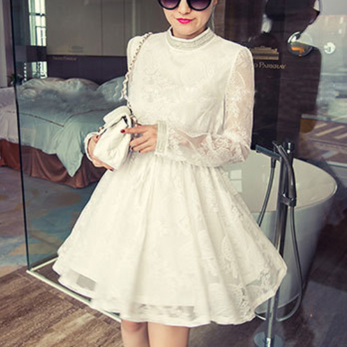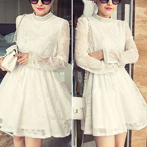 You look so sweet,fresh and elegant in this lace dress. It features long sleeve,