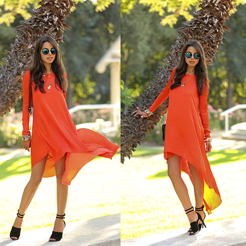 Crafted from sheer chiffon material,soft,skin-friendly and comfortable to wear. Featuring fashion round neck,long sleeve and irregular hemline design. A good choice for you in spring and fall.