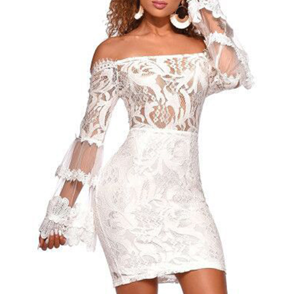Fashion Round neck Long Sleeve Slim Fit Lace Dress