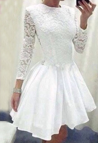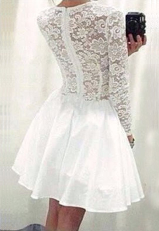 There's nothing more appropriate than this lace dress to show your sweet and elegant temperament. Backside and sleeve with hollow out lace design,fashion round neck,long sleeve and high waist design,perfect show your charming curve.