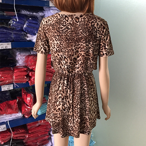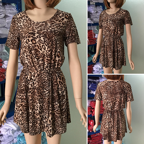 Leopard style,stylish and popular. Short sleeve,round neck and gathered waist design,very comfortable to wear.