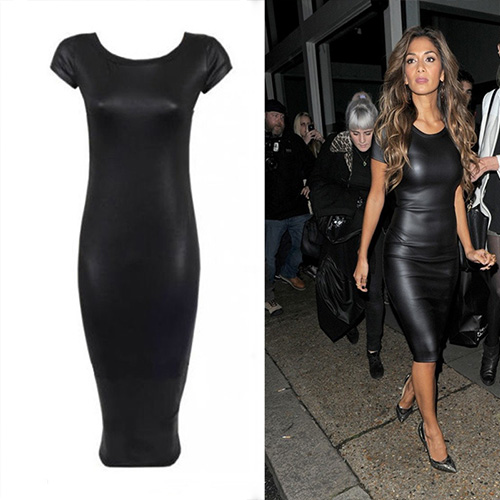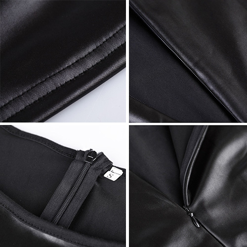 Wow,such a chic and beautiful dress. Crafted from faux leather material,comfortable to wear. Black color,mysterious and flattering. Fashion round neck,long sleeve,slim fit and package hip design,perfect outline your charming and seductive curve.