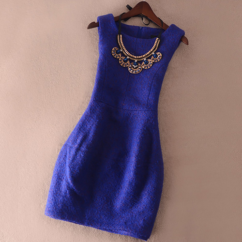 Wanna show your beauty and elegant temperament? Try this dress,it can achieve you. Crafted from wool material,warm and comfortable to wear. Sleeveless,round neck and gathered waist design. In winter,you can pair it with your coat and leggings.