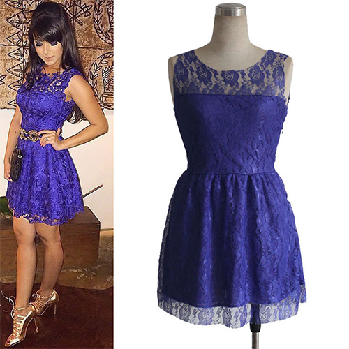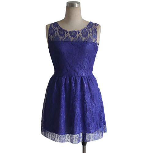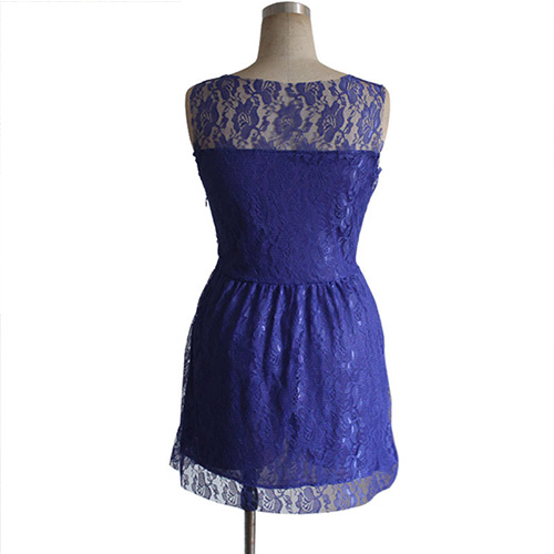 Lace dress is always loved by women,since it symbols feminine and sweet. If you don't have one,what are you waiting for? Take this one to your wardrobe. It features fashion round neck,sleeveless and gathered waist design. Show your sweet and feminine sense through this dress.