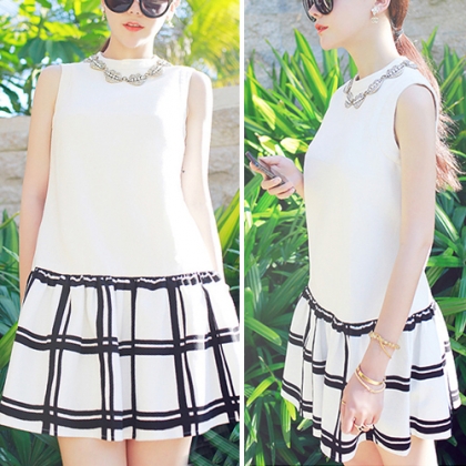round neck design,classical and stylish. Plaid hemline design,chic and unique. Having