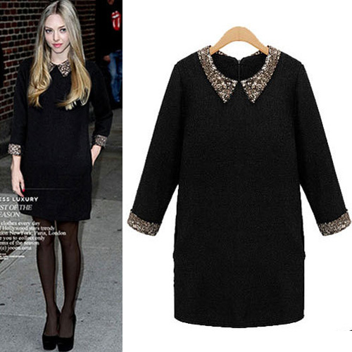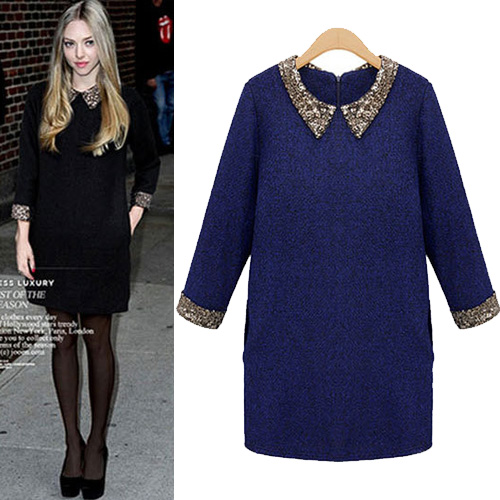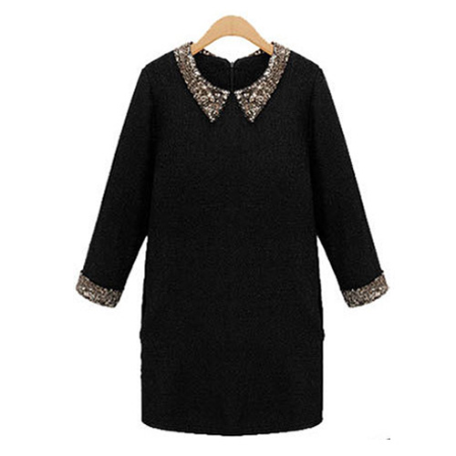 This dress is characterized by unique POLO collar design,sweet and fashion,and with sequins for decoration,