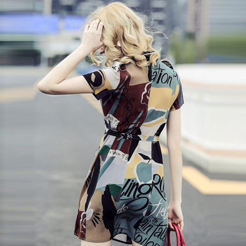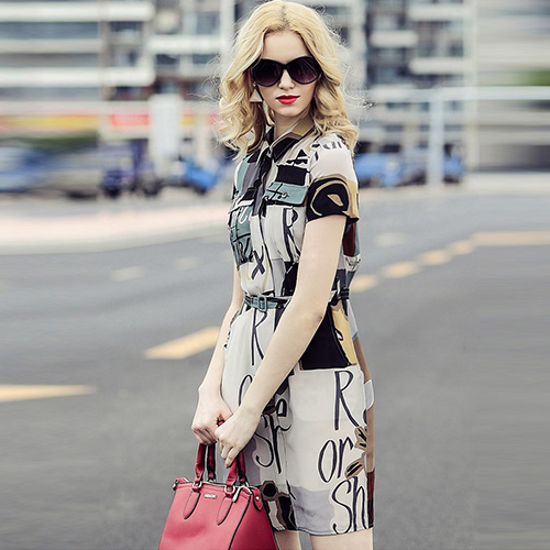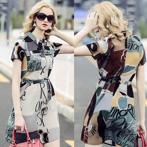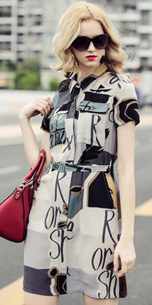 this short sleeve shirt dress. It features all over abstract floral print,with all the classic