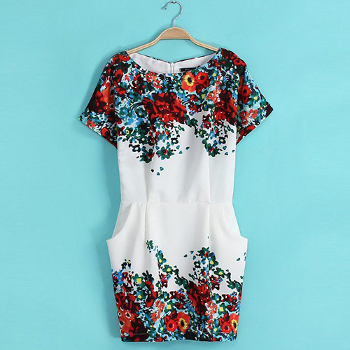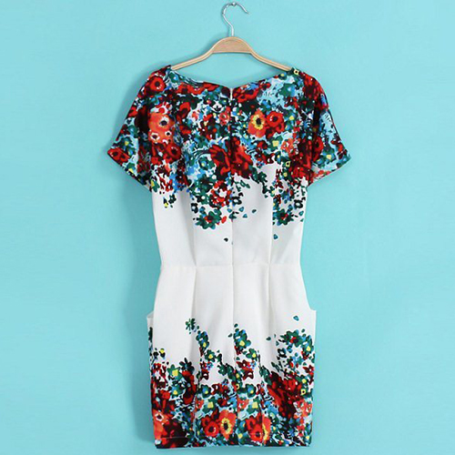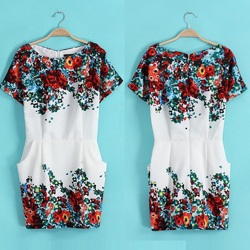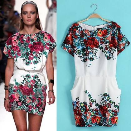 For the hot summer,here is nothing sweeter than a knee-length floral print dress . It features short sleeve,