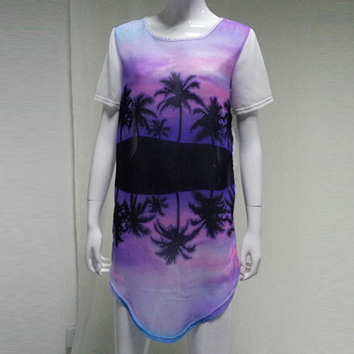 Slip into this breezy chiffon dress,you would have a cool summer! It features chic coconut trees