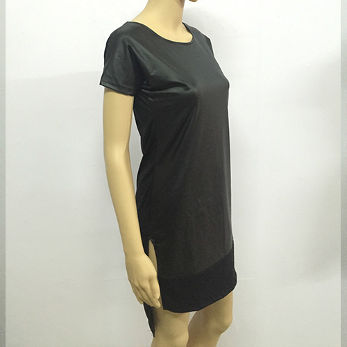 thanks to its delicate details. It features short sleeve,round neck and high-low hemline design.