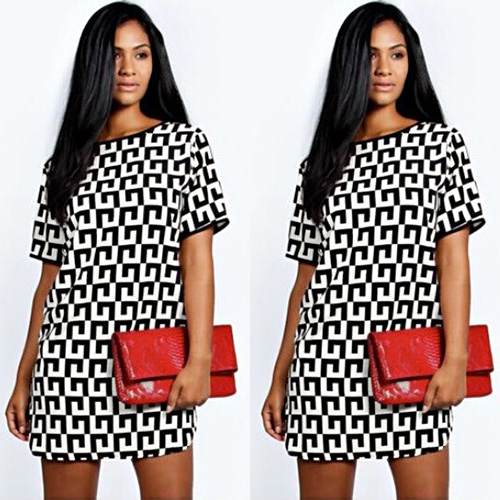 It features short sleeve,round neck and loose design. Adding a waistband would make you look more eye-catching.