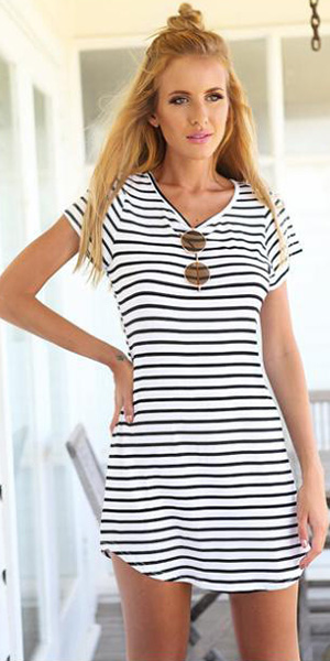 Though simple design,but filled with stylish and chic elements. Striped style,with short sleeve and round neck design.