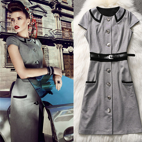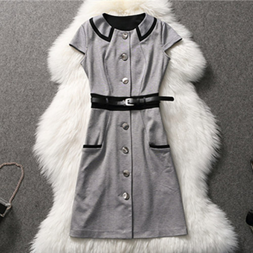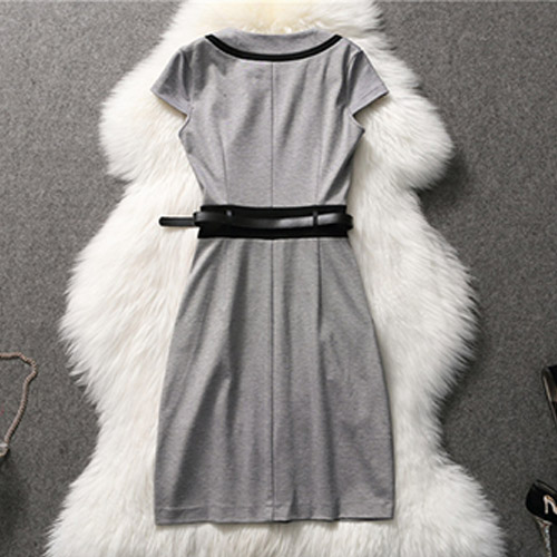 You can't be more elegant and fashion in this dress. It is characterized by single-breasted design,fashion round neck and short sleeve. Gathered waist style,with waistband for decoration. Wearing this dress to work,your colleague will certainly envy you.