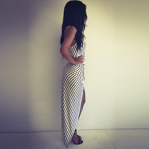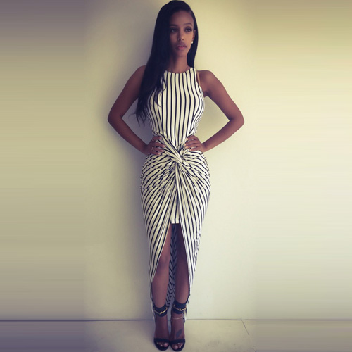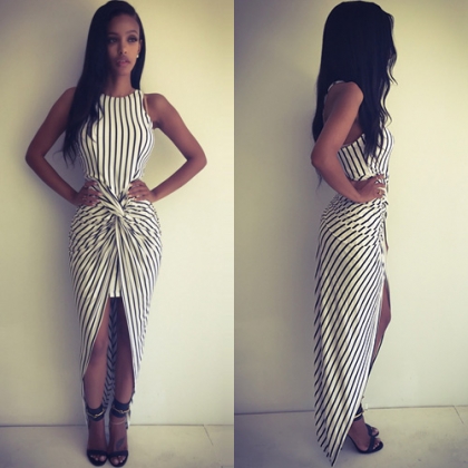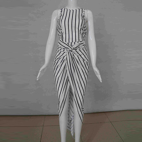 No matter that you go to party or work, it is a good choice. Round neck, sleeveless, blue-white