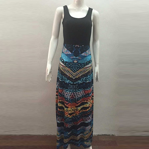 Contrast color floral print style,with sleeveless and round neck design,classical
