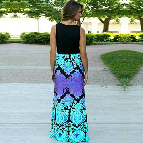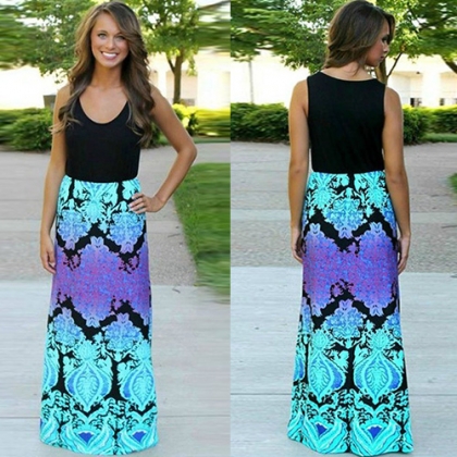 This maxi dress features chic floral print style,with sleeveless and round neck design. No