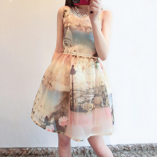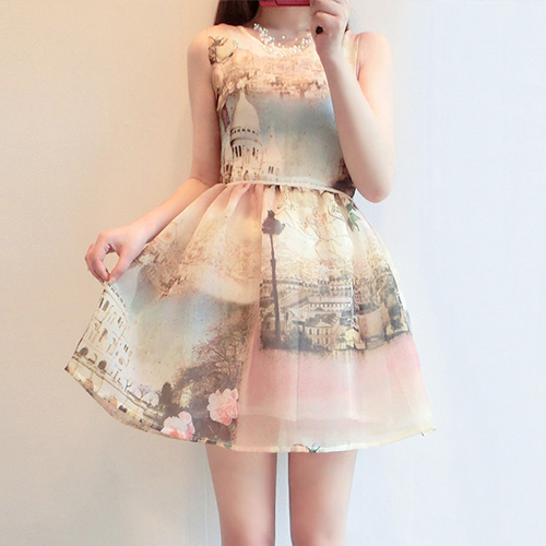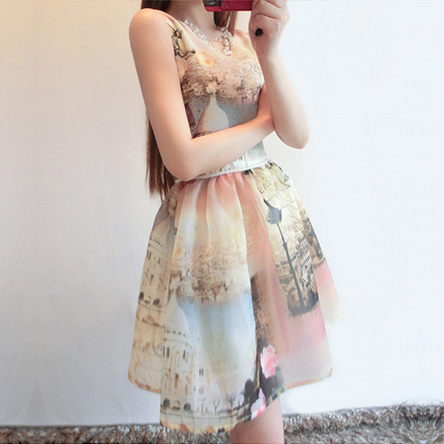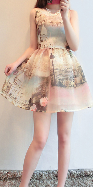 sleeveless and high waist design. Create a sweet princess style via this dress.
