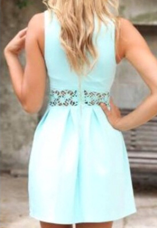 It features sleeveless and round neck design,waist part with hollow out design,chic and sexy.