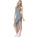 Sleeveless,round neck and irregular hemline design,stylish and chic. Paired with your casual