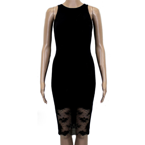 This dress features black color,sexy,mysterious and flattering. Lace spliced design makes it look more feminine.