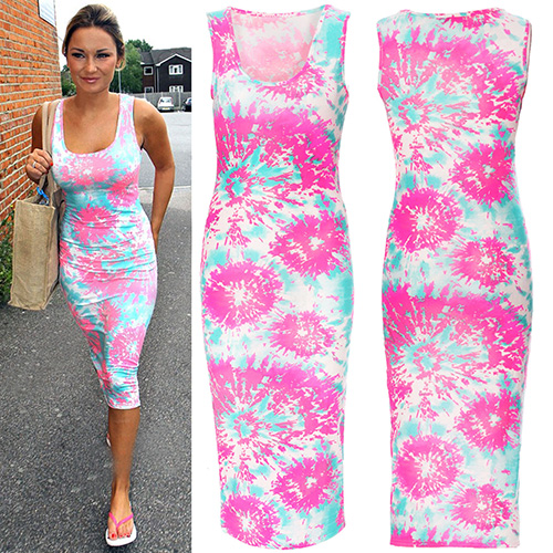 This slim fit floral print dress can make you look more sweet and glamorous. Sleeveless,