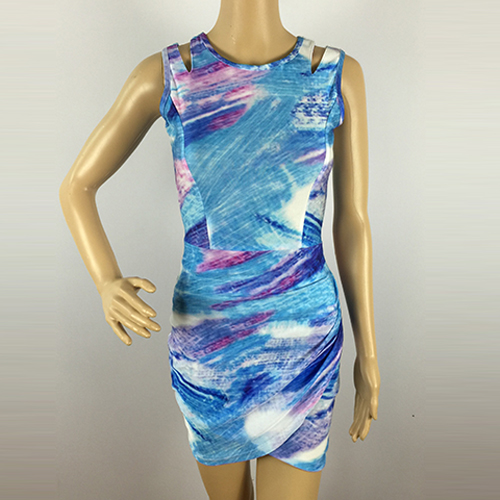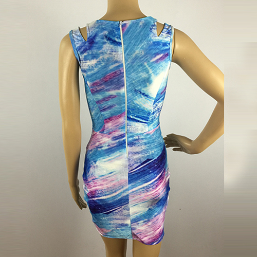 Completed with chic printed,with sleeveless,round neck and fit silhouette. Backside zipper