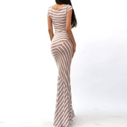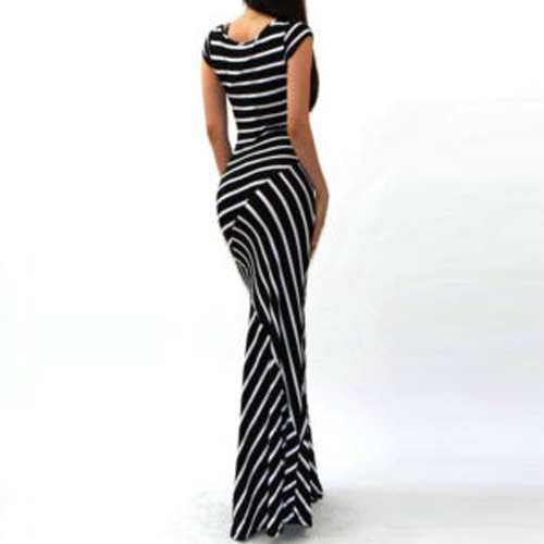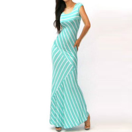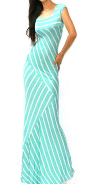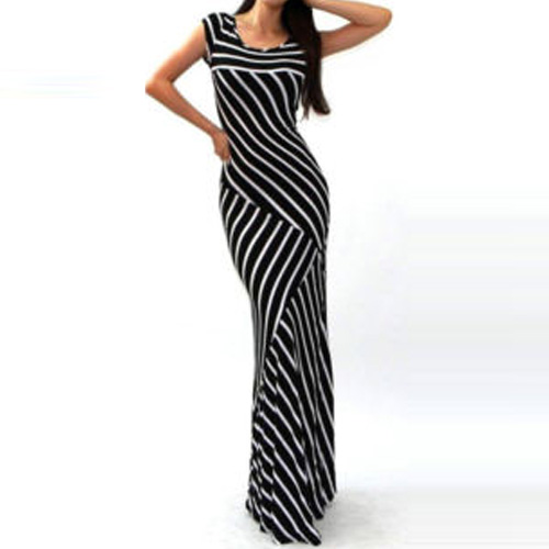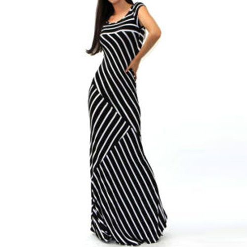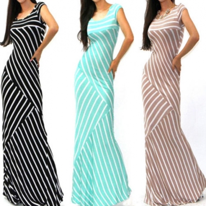 This dress features striped style,with sleeveless and round neck design,stylish and elegant.