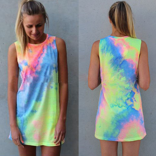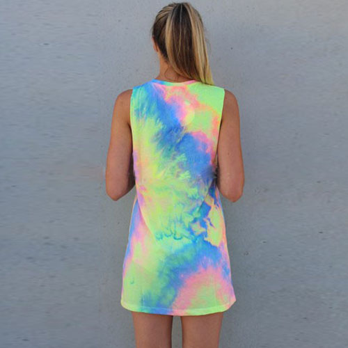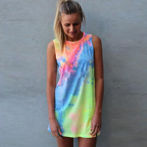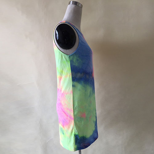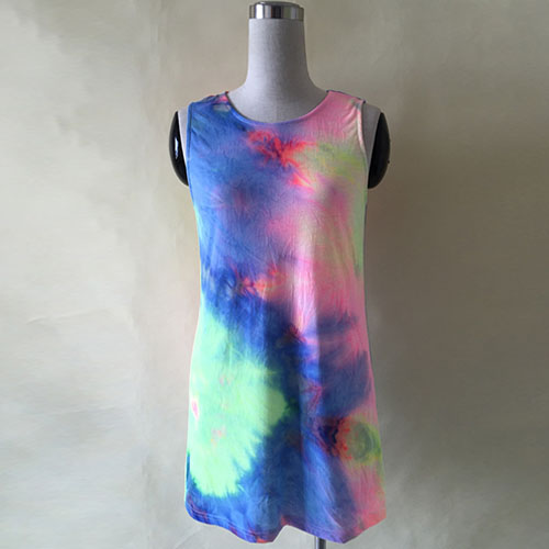 It features all over tie-dye print,with sleeveless and round neck design,stylish and