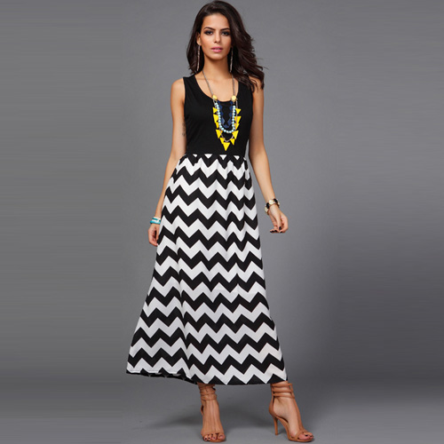 This dress will make you look stylish and eye-catching. It features sleeveless,round neck and