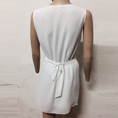 soft woven fabric and delicate details. It features a v-neckline and sleeveless design. The best