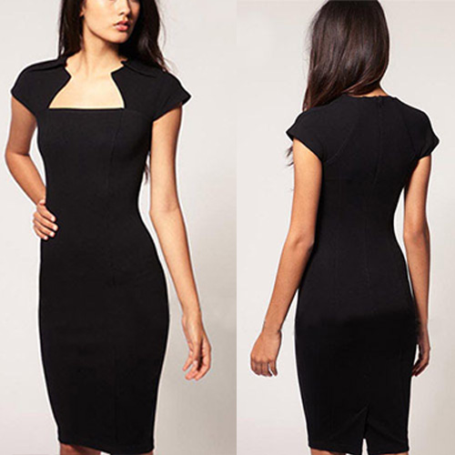 Show your elegant temperament and slender figure with this dress. Featuring pure color design,a solid colorway. Unique collar design,short-sleeved,and hemline with slit design. Add it to your wardrobe.