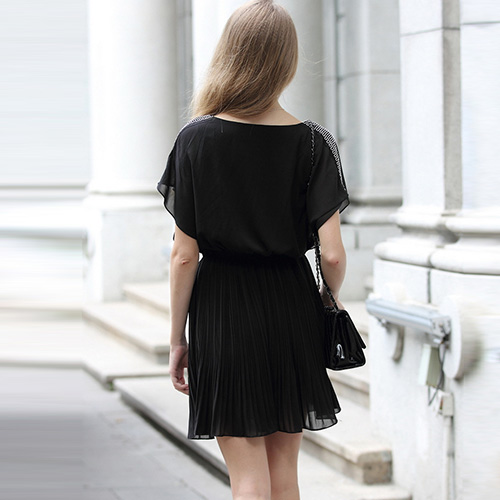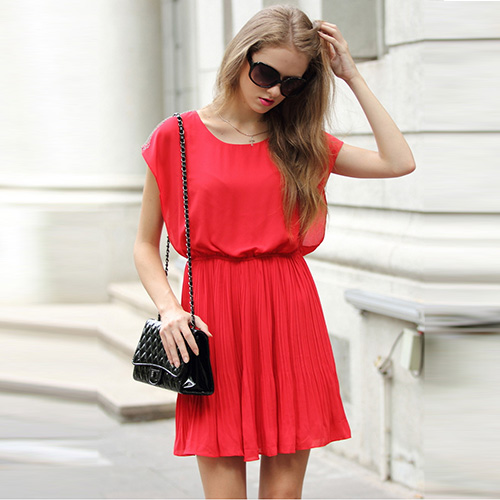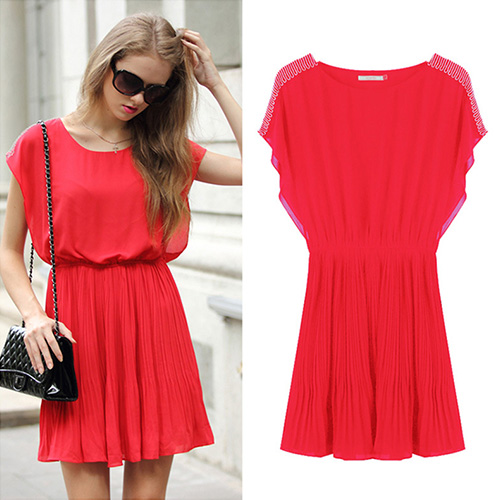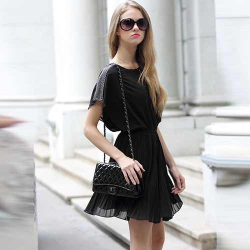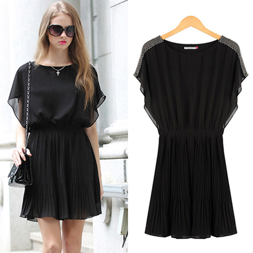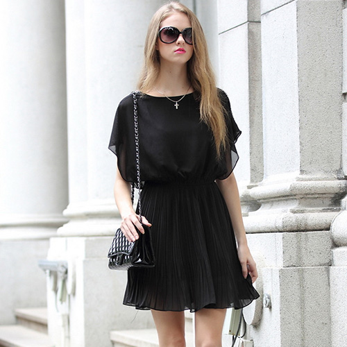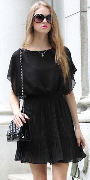 You should have such a stylish and charming dress in your closet. Solid color style,with bat sleeve