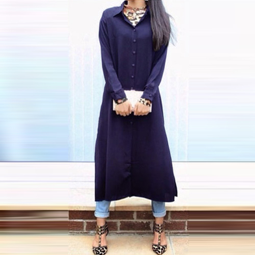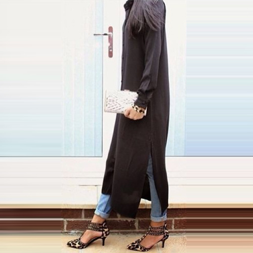 with long sleeve,POLO collar and slit hem design,filled with classic,stylish and chic elements.