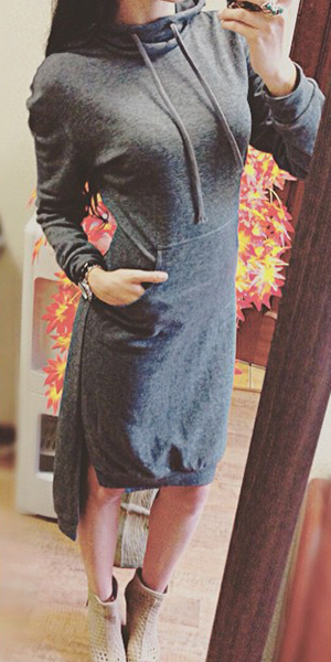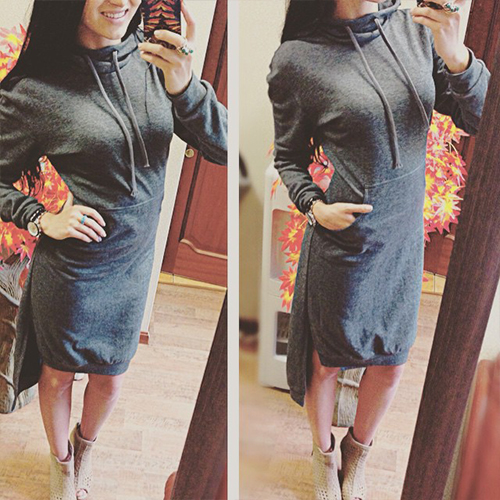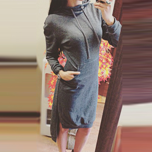 It features solid color style,its chic design like high-low hooded with drawstring design makes it more