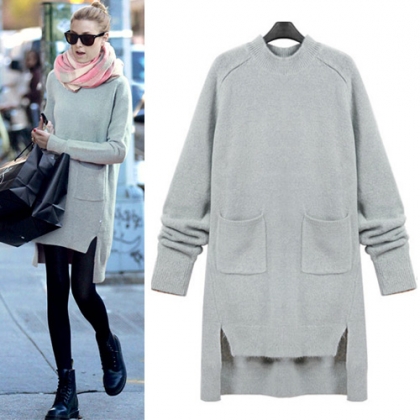 with long sleeve,round neck and irregular slit hemline design. In some cold days,if pairing with your leggings