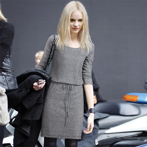 is one of those pieces. A sleek fit with long sleeve round neck and elastic waist will keep you comfy all day.