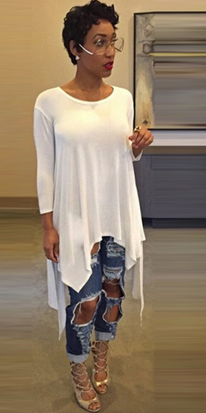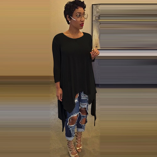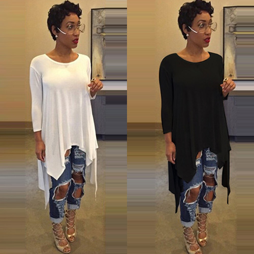 Solid color with long sleeve and irregular hem design,chic and stylish. A most straight way to