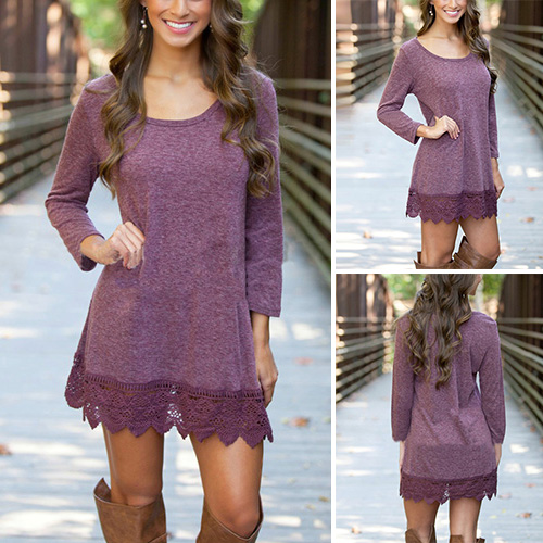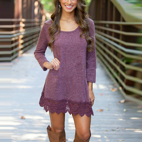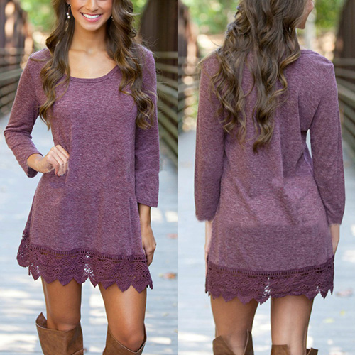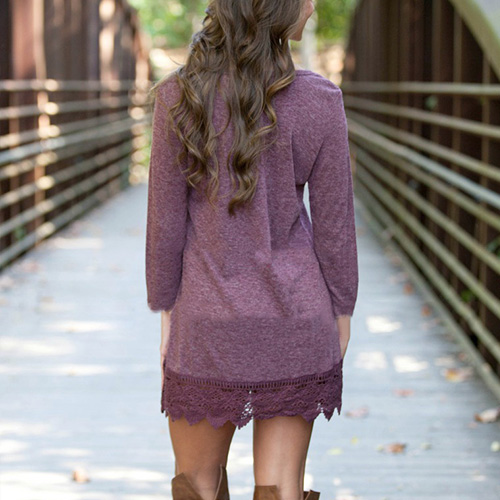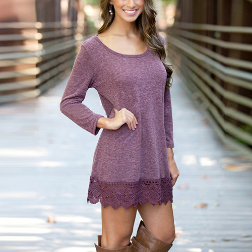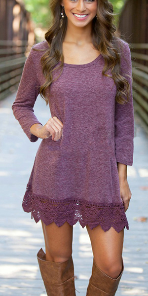 Outfitted with long sleeves,round neck and lace spliced hem,simple but chic. Dress up with sexy wedges