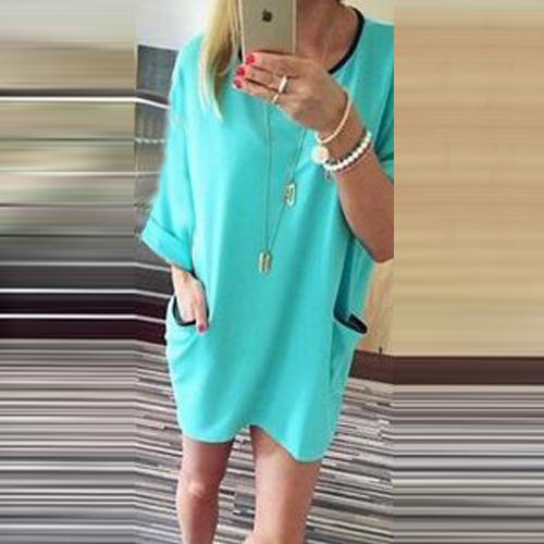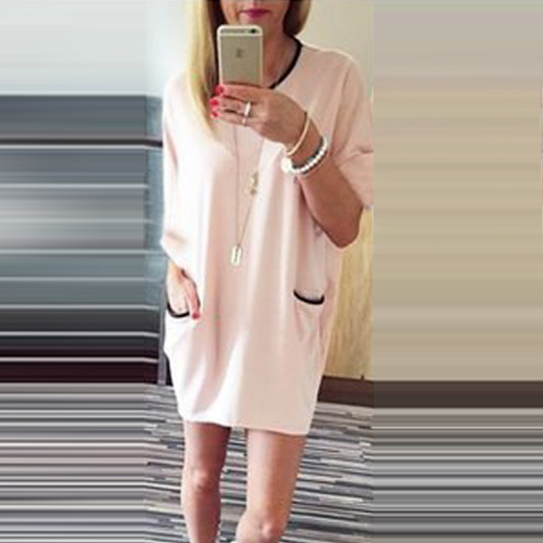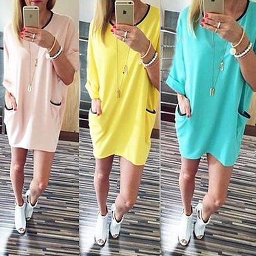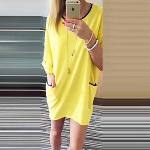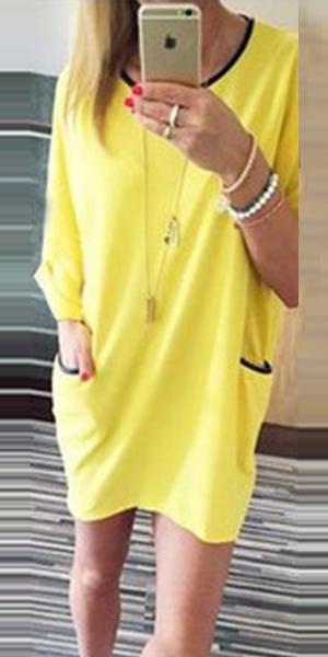in this dress. Solid color with long sleeve and round neck design. Plus,its hand pockets design