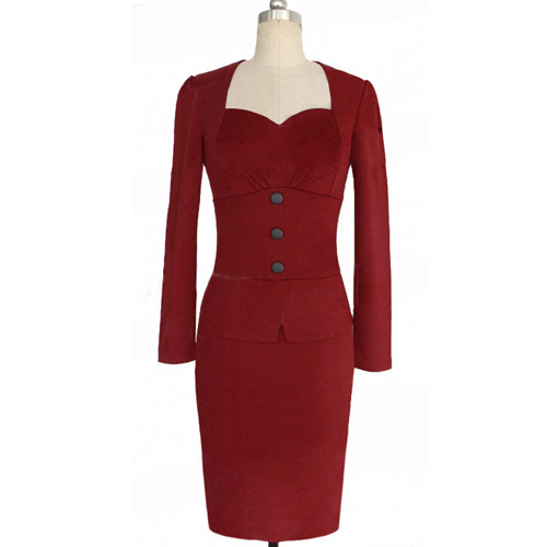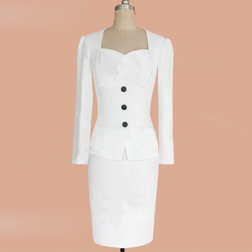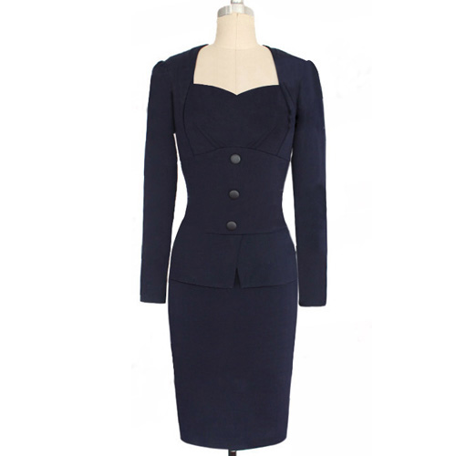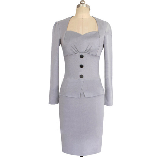 Front with decorative buttons,long sleeve and slim fit design. A perfect choice for those office ladies.