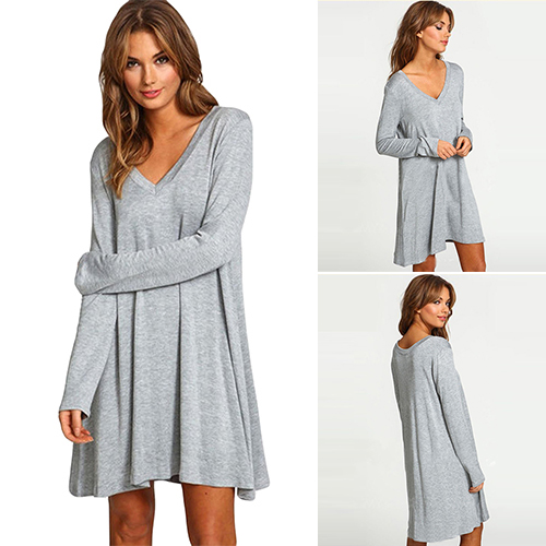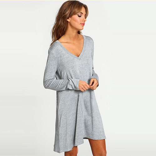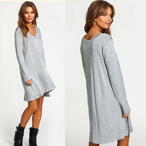 The design core of this dress is comfy and casual. Solid color style,with long sleeve,