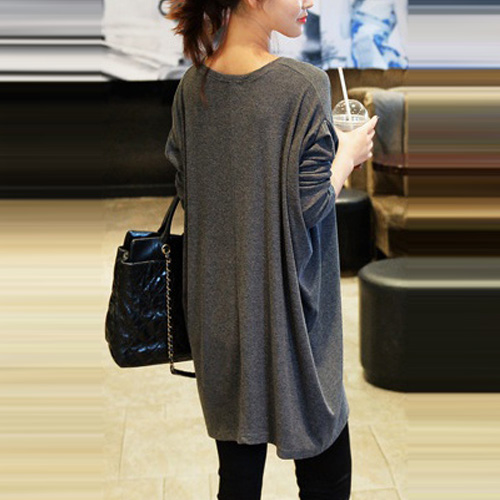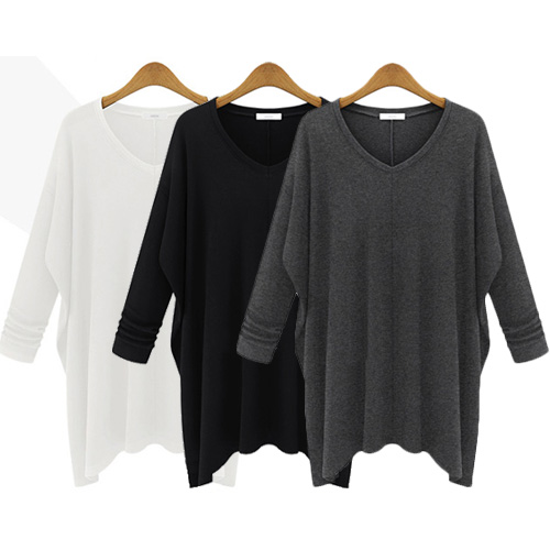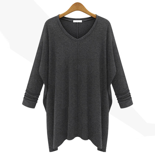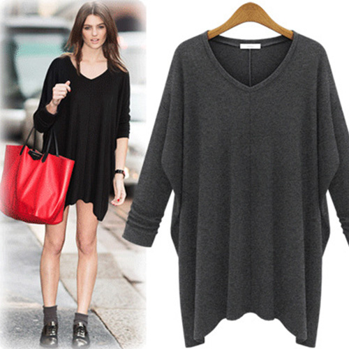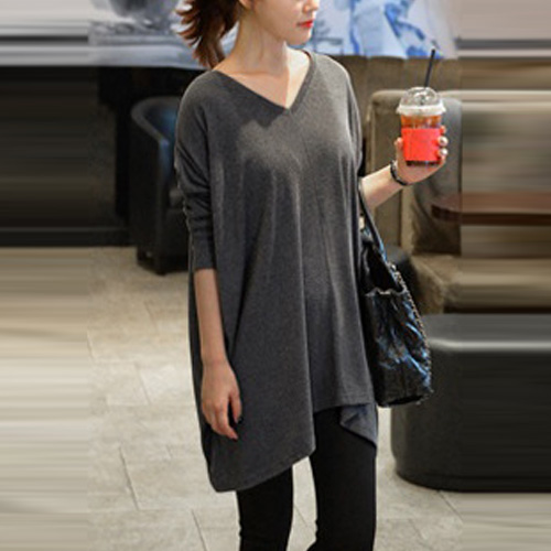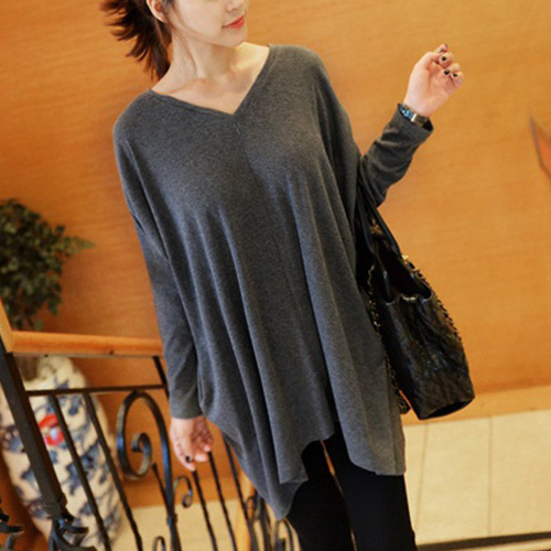 It features solid color style,with long sleeve,v-neck and irregular hem design,and its
